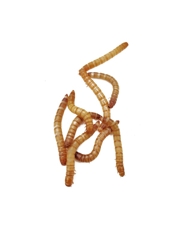 Tenebrios são insetos holometábolo ou seja possui a metamorfose completa, sendo 4 estágios de vida, ovo, larva, pupa e besouro. A larva normalmente possui 2 cm ou mais de comprimento. São insetos populares servidos como alimento para repteis, pássaros, peixes, mamíferos e muitos outros animais. Por seu tamanho essa larva é indicada para animais de pequeno porte.